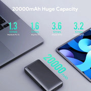 20,000mAh Huge Capacity: Say goodbye to low battery anxiety. This power bank is equipped with a staggering 20000mAh capacity, providing multiple charges for your smartphones, tablets, and more. It's the perfect companion for long trips, outdoor adventures, or emergencies.