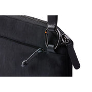 Eco-tanned leather accents, metal hardware and custom carabiner clips all work to elevate the look of this bag.