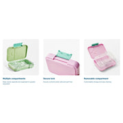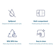 Equipped with multiple compartments and a secure lock system, our Snacky Pack is perfect for on-the-go snacking! Its removable layer ensures easy cleaning; the BPA/BPS-free material guarantees a safe meal.