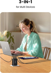 - 3-in-1 Versatile Charging: Charge 3 devices simultaneously, from phones to tablets and laptops. Intelligent power distribution ensures optimal charging speed for each device, making it ideal for home, office, or travel