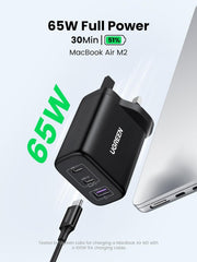 UGREEN 65W GaN Fast Charger with 3-Ports (UK Plug)