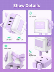 - Wide Compatibility: 2 USB C ports and 1 USB A port provide 65W to phones, tablets, laptops, and more, compatible with iPhone 8-17 Series, Galaxy S10-S25 Series, Pixel 7-10, MacBook Air/Pro, iPad Pro/Air/mini, Watch 11/10, HomePod, AirPods Pro, and more