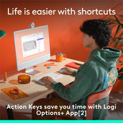 Seamlessly transition from “work mode” to “break mode” with the customizable Action Keys and Logi Options+ App. Access your suite of productivity tools, open up your favorite social media or launch your most used AI tools with a single key press.
