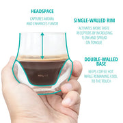 Each 2.5oz (75ml) PROPEL espresso glass is uniquely hand-blown and purposefully designed to give you the best tasting single or double shot. The double-walled construction ensures the glass is cool to the touch, while keeping coffee temperature just right. It also features a robust amount of headspace to help capture and circulate the rich aroma.