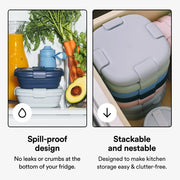 Perfectly portable and easily stackable, our box is designed for lunchtime, picnics, and those bite-sized moments in between. A sustainable swap for those pesky single-use baggies!
