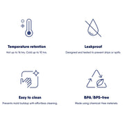 NOTE: The temperature retention duration may vary based on the surrounding temperature and the type of cap or lid used.