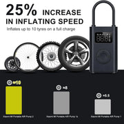 The Xiaomi Portable Electric Air Compressor 2 is powered by a large-capacity battery, when fully charged, reinflate ten tyres* continuously or fully inflate, two empty tires* continuously, making routine maintenance simple and easy. This mini air compressor is also versatile and can inflate various inflatables such as car tires, motorcycles, bicycles, and balls.