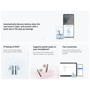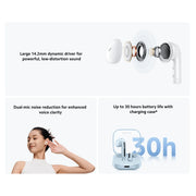 The dual-channel noise cancellation algorithm can achieve a wind noise cancellation effect up to 4m/s* for calls. Coupled with dual-microphone noise reduction technology ambient noise is effectively reduced allowing clear calls both indoors and out.