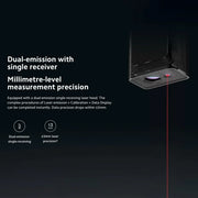 Equipped with a dual-emission single-receiving laser head. The complex procedures of Laser emission > Calibration > Data Display can be completed instantly. Data precision drops within ±3mm.