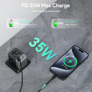 Versatile Compatibility: With its three USB-C ports and two USB-A port plus a universal AC socket, this travel adapter is the ultimate all-in-one charging solution for all your gadgets.
